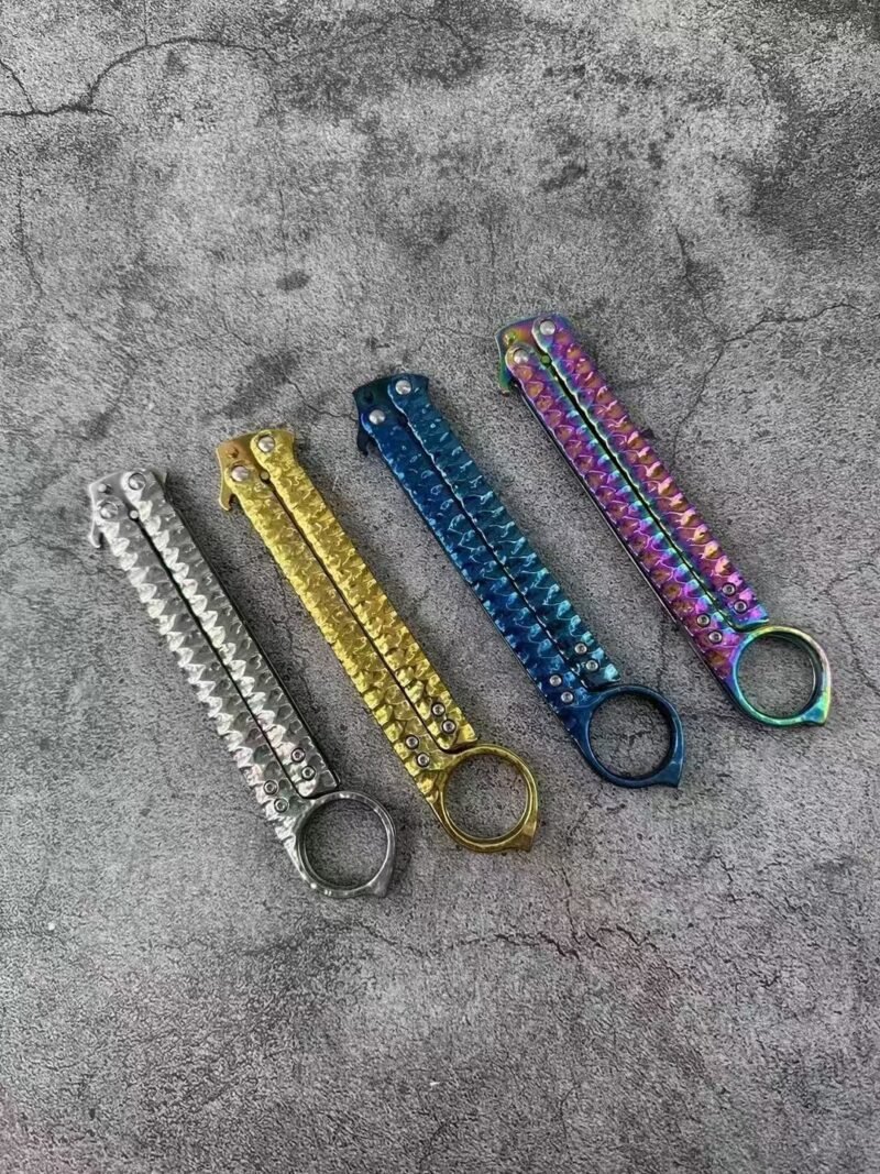 The Balisong Karambit Eagle Claw is a striking variation of the traditional butterfly knife, featuring a unique karambit-style curved blade. This Color Titanium Edition stands out with its vibrant, eye-catching finish, combining functionality with bold aesthetics. Perfect for flipping enthusiasts and collectors, this knife offers smooth handling and precision in every move. Its eagle claw-inspired design adds an aggressive and stylish edge, making it a standout piece for training, display, or EDC.