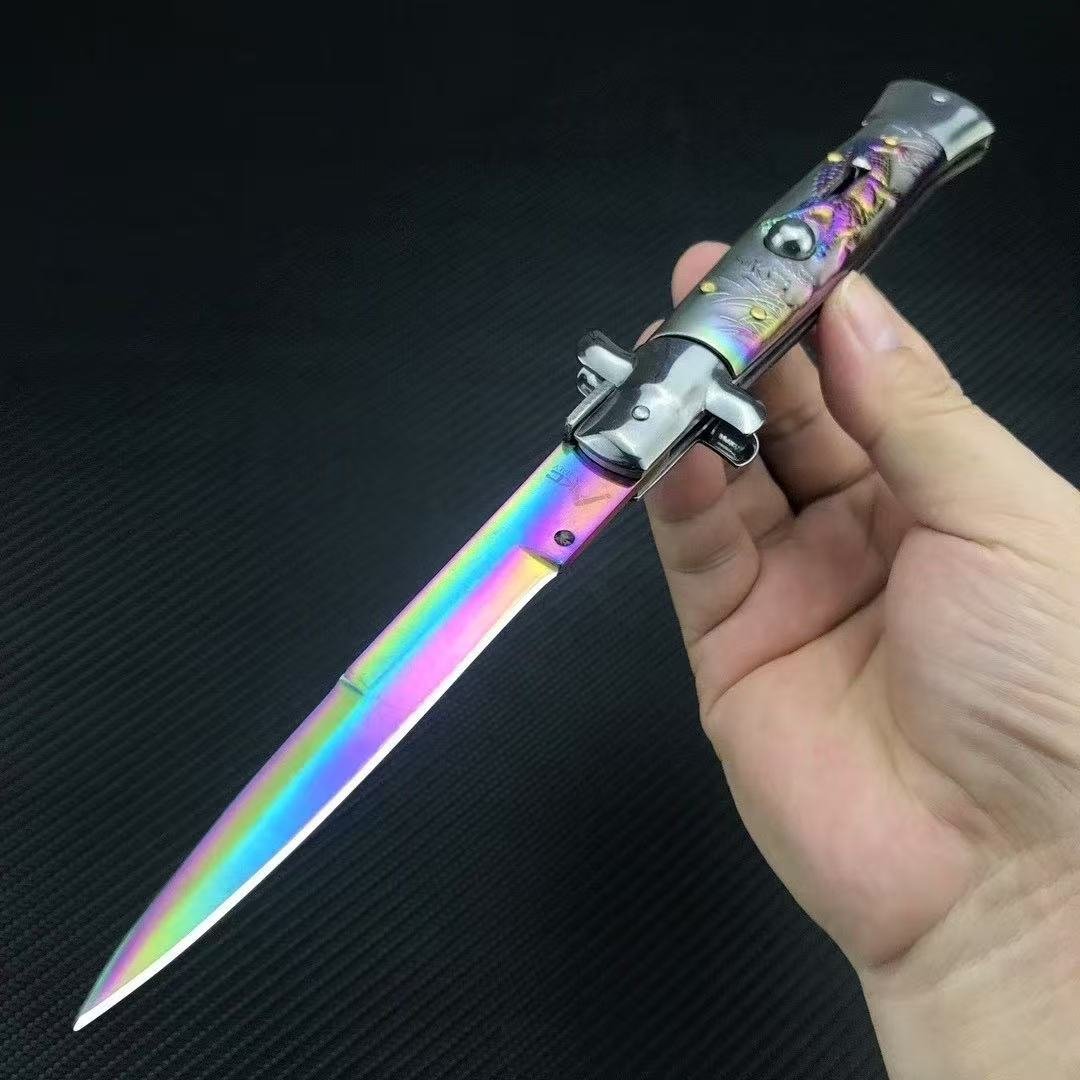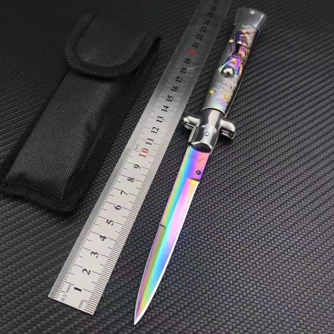 Cuchillo automático de 9 pulgadas estilo estilete italiano OTF Cuchillo Damasco grabado