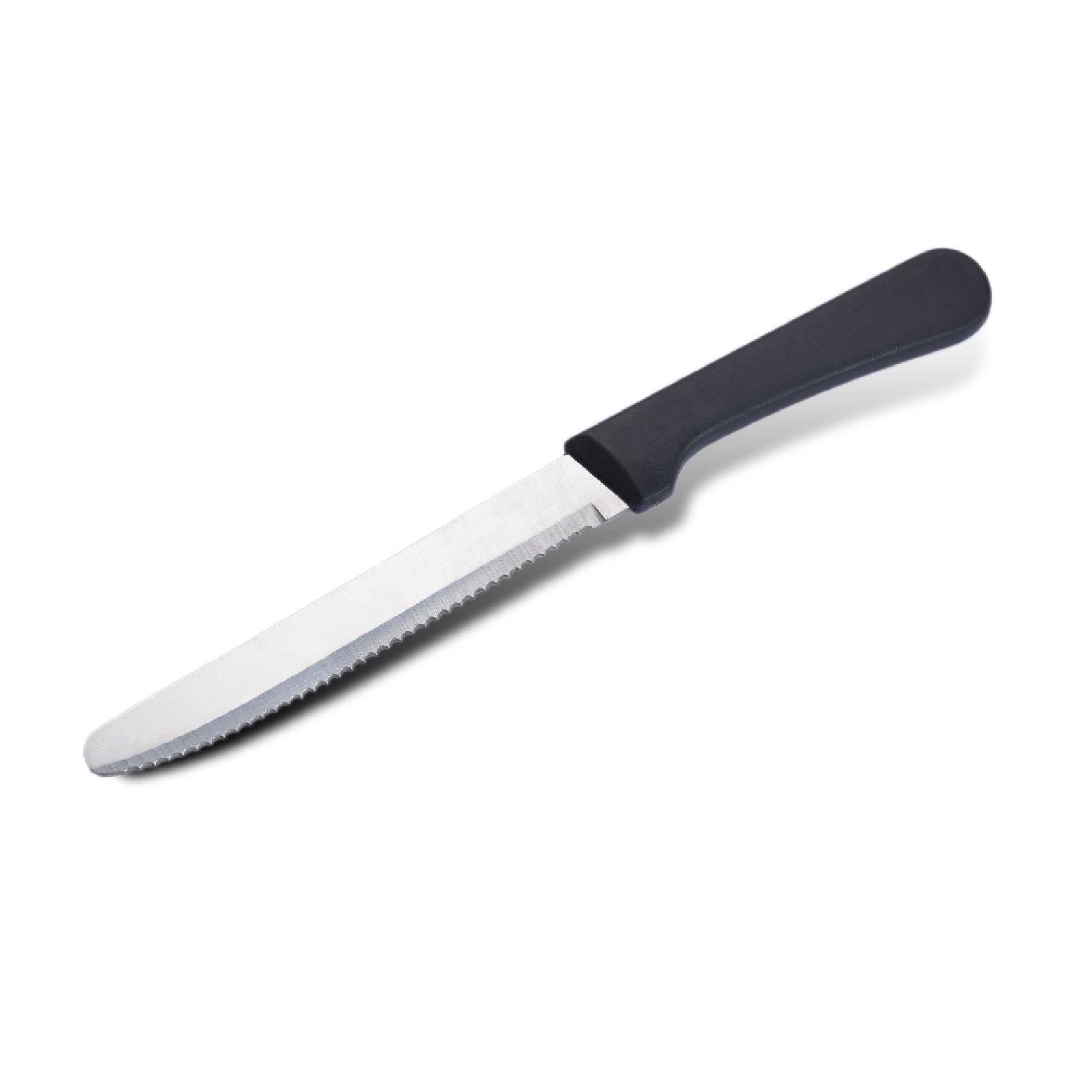 Stainless steel serrated knife with practical wooden handle and plastic handle