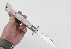 La navaja plegable AKC Mafia combina funcionalidad práctica con el estilo clásico italiano. Inspirada en los tradicionales cuchillos de estilete de la mafia, esta pieza es perfecta tanto para aficionados a los cuchillos como para coleccionistas y usuarios habituales.