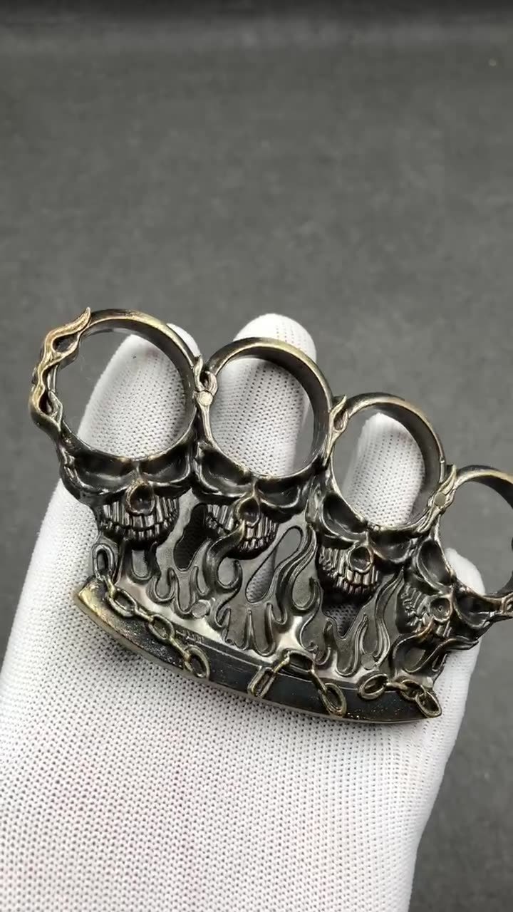 Material: zinc alloy (the knife is ordinary 45# tool steel, with electroplating treatment on the surface)Size: 11.8cm in total length when opened (see detailed picture, the size is measured manually, if there is any deviation, please refer to the actual situation)Blade length: 3.6cm Whether it is sharpened: not sharpenedWeight: about 152 gramsPackaging: neutral transparent OPP bagColor: black, silver gray, brass, bronze silverFunction: suitable for martial arts fighting defense and life-saving, almost no special training is required to master it. Suitable for outdoor travel, self-driving travel equipment, emergency first aid in critical situations, it is a very practical product for home travelPrecautions: The knife is not sharpened and needs to be sharpened by yourself. The knife is very small and is only suitable for emergency use. The knife has no lock buckle, please use the knife alone after opening. You need to close the knife before you can grasp and use the fist buckle (to avoid cutting yourself)Remarks: The surface of the product is electroplated. The black one is spray-coated. There will inevitably be slight scratches and mold marks on the surface of metal products, as well as polishing marks. Please be careful if you mind! There will be contact marks on the inner edge of one of the finger holes during factory electroplating and black spray-coating. Please be aware!Medium Thick Round Head Four-Finger Knuckle Duster