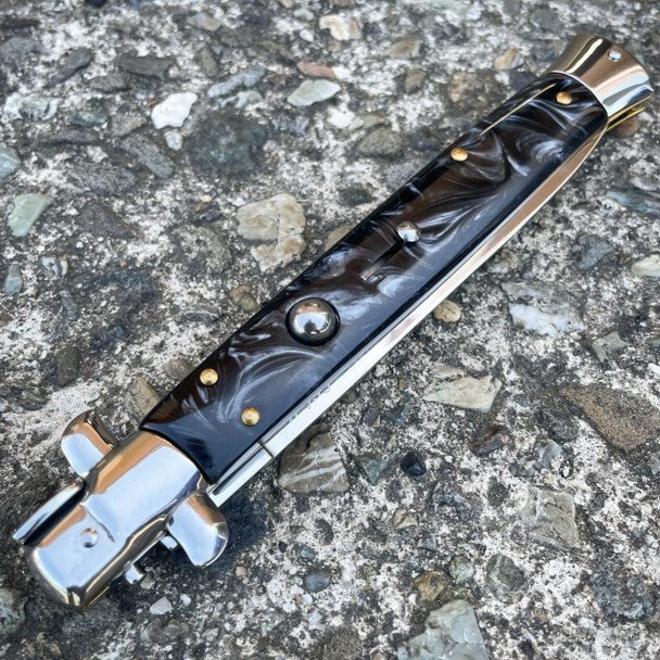Navaja italiana Big Boy Auto de 13 pulgadas con hoja intercambiable, color negro perla