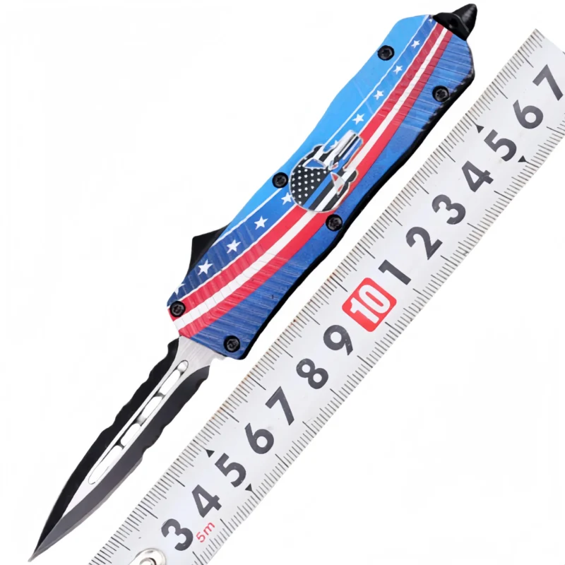 Handle Material: Zinc Alloy Blade Material: 3CR13 Stainless steel Handle Length: 4.00“ Overall Length 6.5″ Inches Blade Length 2.75″ Inches Pocket Clip Includes Nylon Sheath w/ Belt Loop Weight: 240G(with packaging) knife weight:200G Customizable positions: clip, blade4 INCH Military Tactical Automatic knife