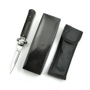 Total length: 255mm (10 inches) Blade length: 110mm (4.33 inches) Handle: 145mm (5.70 inches) Blade thickness: 3mm (0.118 inches) Blade width: 26.8mm (1.05 inches) Handle thickness: 12.6mm (0.49 inches) Hardness: 56-58HRC Blade material: 440 Handle material: Integrated aviation aluminum 6061-T6 System: Bushing Net weight: 110gClásico caballero italiano Stiletto OTF